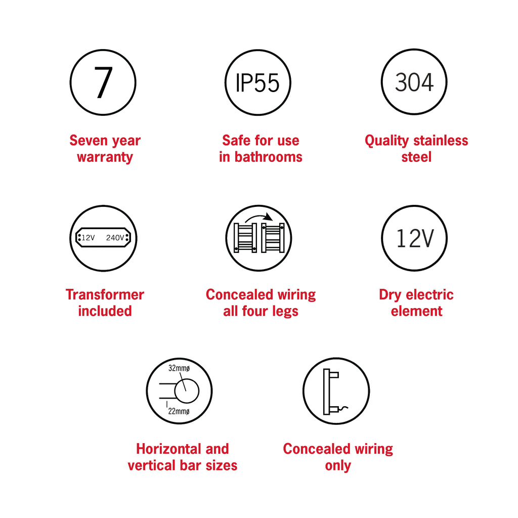 The Thermogroup 4-Bar Round Ladder Heated Towel Rail, 550mm, features a brushed stainless steel finish for a sleek and modern bathroom look. Designed for efficient heating, it ensures towels are warm and dry, with flexible installation options for convenience. Crafted from durable materials, it combines style and functionality. Warranty: 7-year replacement warranty covering the plated finish, rail body, and element, ensuring long-lasting performance and peace of mind. Perfect for enhancing bathroom comfort and elegance.