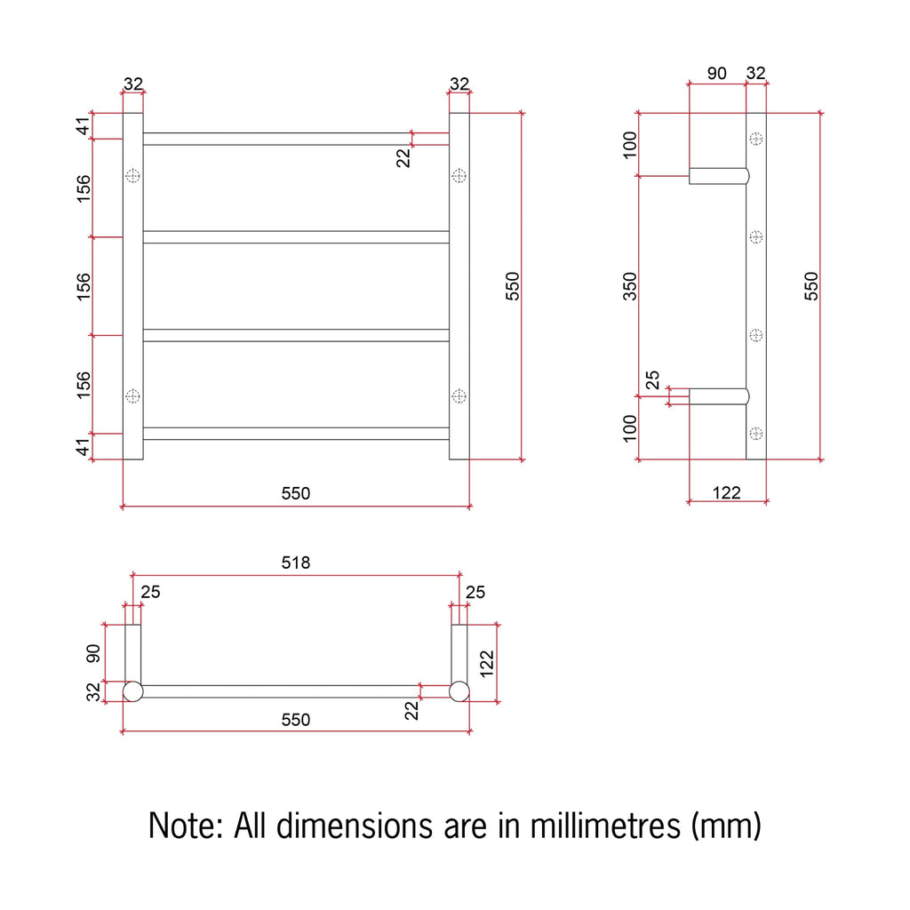 THERMOGROUP 4-BAR ROUND LADDER HEATED TOWEL RAIL MATTE BLACK 550MM