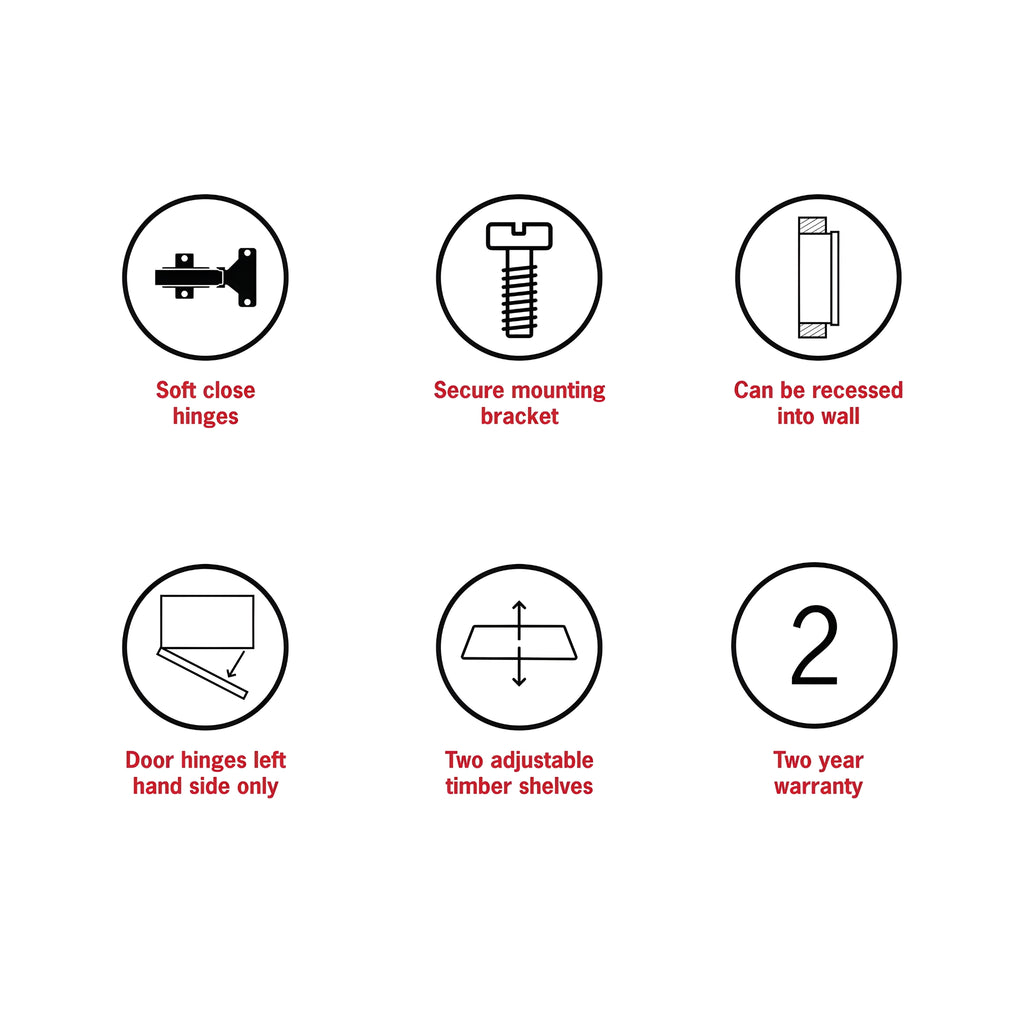 Thermogroup Ablaze Arch Mirror Cabinet Black 500X800MM combines functionality with style, featuring a sleek arch shape and durable black painted MDF construction. Perfect for modern bathrooms, this wall-mounted cabinet provides ample storage while its polished edge and frameless design add a touch of elegance. The cabinet’s compact 500x800mm size ensures it fits seamlessly into various spaces. Enjoy peace of mind with a 2-year replacement warranty for this versatile bathroom essential.