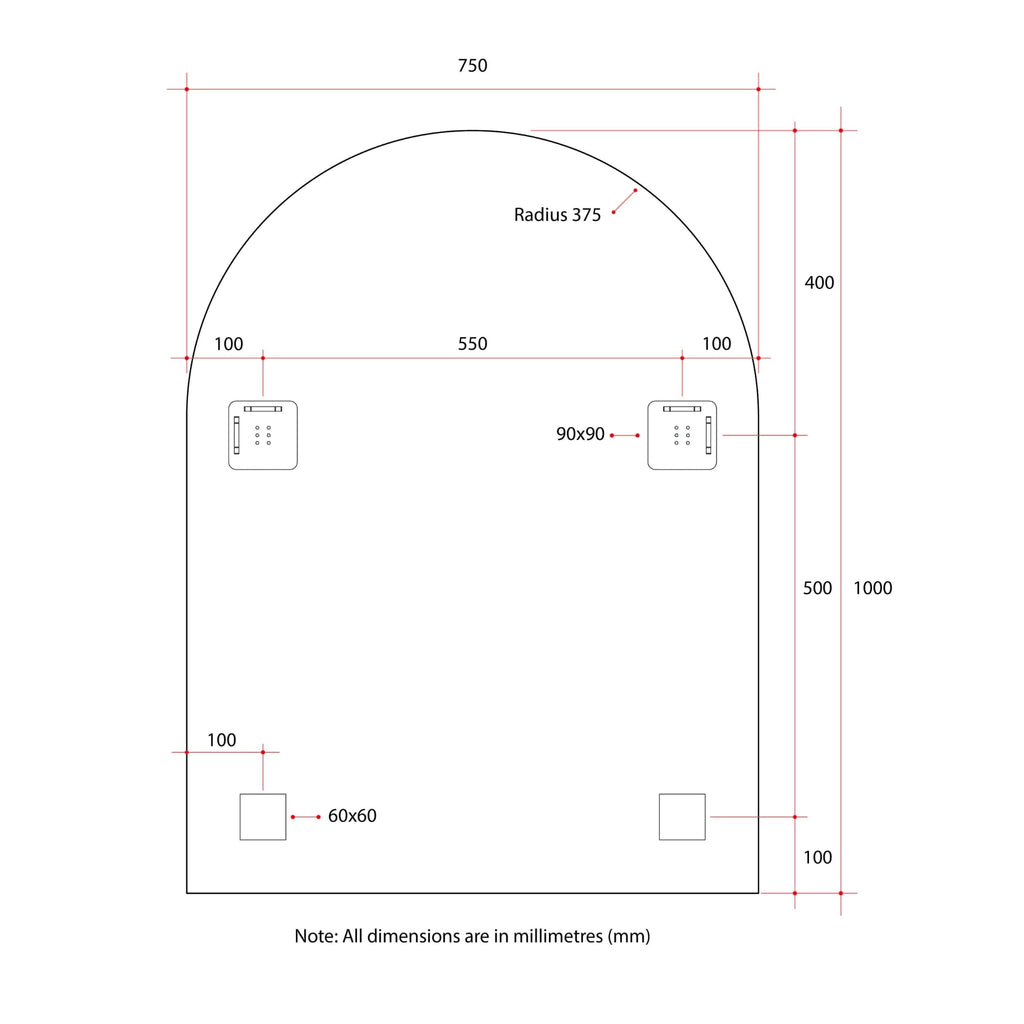 THERMOGROUP ABLAZE ARCH SHAPE POLISHED EDGE MIRROR WITH HANGERS 750X1000MM