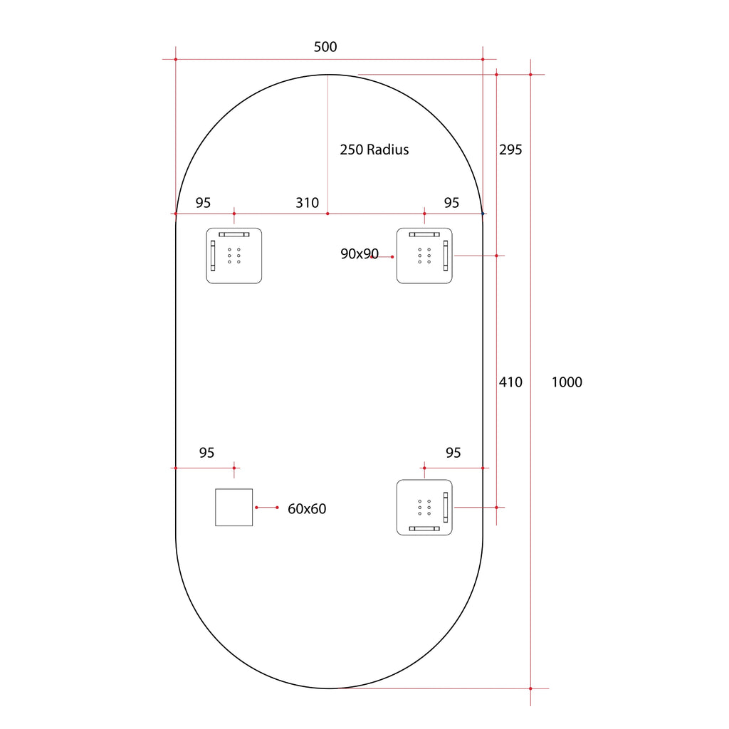 THERMOGROUP ABLAZE PILL SHAPE MIRROR WITH HANGERS 500X1000MM