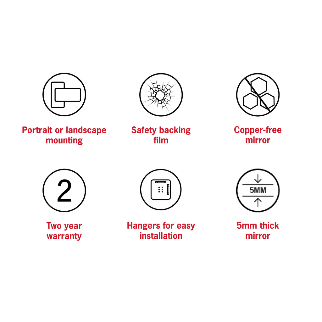 Thermogroup Ablaze Rectangle 25mm Bevel Edge Mirror 750mm is a sleek and functional addition to any space. Featuring a frameless design with a stylish bevel edge, it measures 750mm x 900mm x 14mm and is made from durable silver mirror material. Designed for versatility, it can be mounted in landscape or portrait orientation using hangers. Weighing approximately 11kg, this mirror blends elegance with practicality and comes with a 2-year replacement warranty for peace of mind.