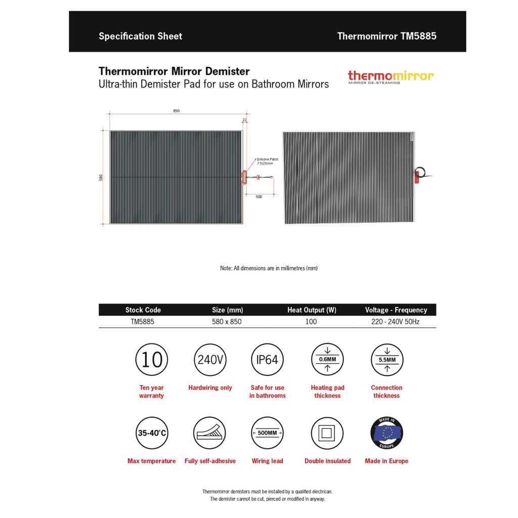 Thermogroup Ablaze Rectangle 25mm Bevel Edge Mirror with Demister (800mm) is a sleek and stylish addition to any space. This frameless, non-LED mirror features a 5mm silver glass construction with a bevel edge and comes in a versatile rectangular shape. Sized at 1200mm x 800mm, it offers a clean and modern design. The mirror includes a demister for fog-free reflection and requires hard-wiring by a qualified electrician. It comes with a 2-year replacement warranty.