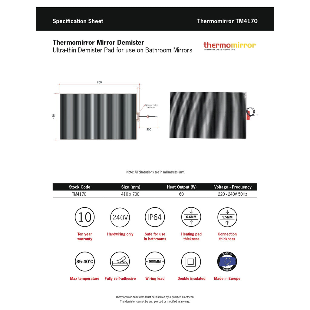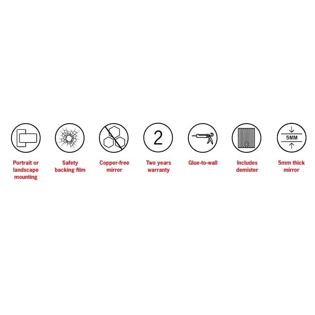 Thermogroup Ablaze Rectangle Polished Edge Mirror with Demister 900MM combines elegant frameless design with practicality. Featuring a 900MM x 750MM size and 5MM thick silver mirror, it can be mounted easily with glue-to-wall installation. The polished edges enhance its modern appeal. Ideal for both landscape and portrait orientations, it includes a demister that must be hard-wired by a qualified electrician. This mirror is perfect for bathrooms, offering a 2-year replacement warranty for peace of mind.