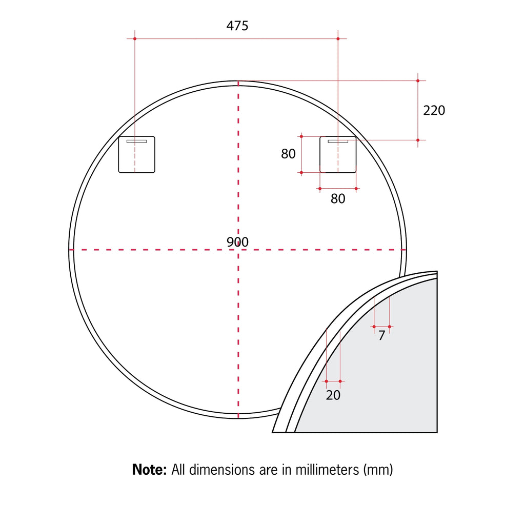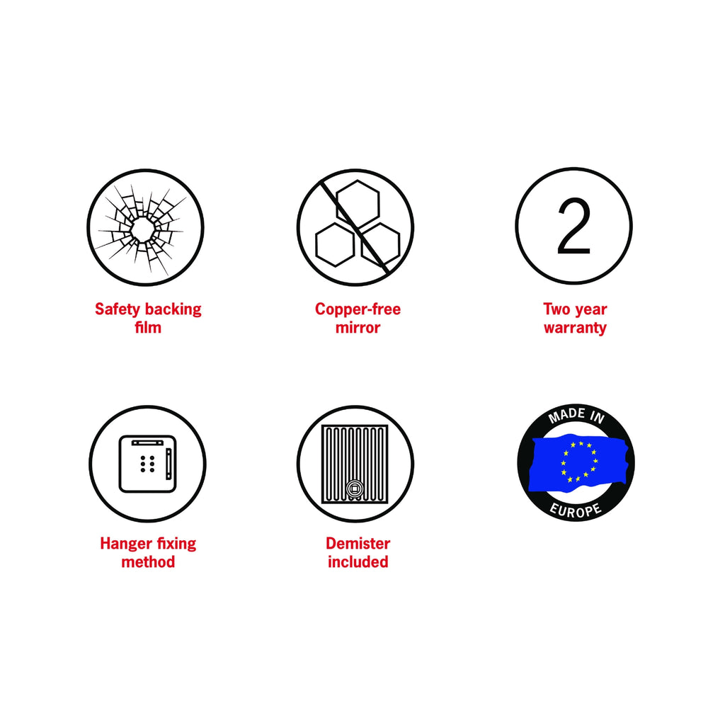 Thermogroup Ablaze Round Gold Framed Mirror Including Demister 900mm offers a blend of style and functionality. With its elegant white powder-coated aluminium frame, this 900mm X 900mm X 20mm mirror adds a modern touch to any space. The 4MM thick glass ensures durability, while its versatile design allows for portrait or landscape mounting. Perfect for enhancing bathroom or living spaces, it is backed by a 2-year replacement warranty, ensuring long-lasting quality and peace of mind.