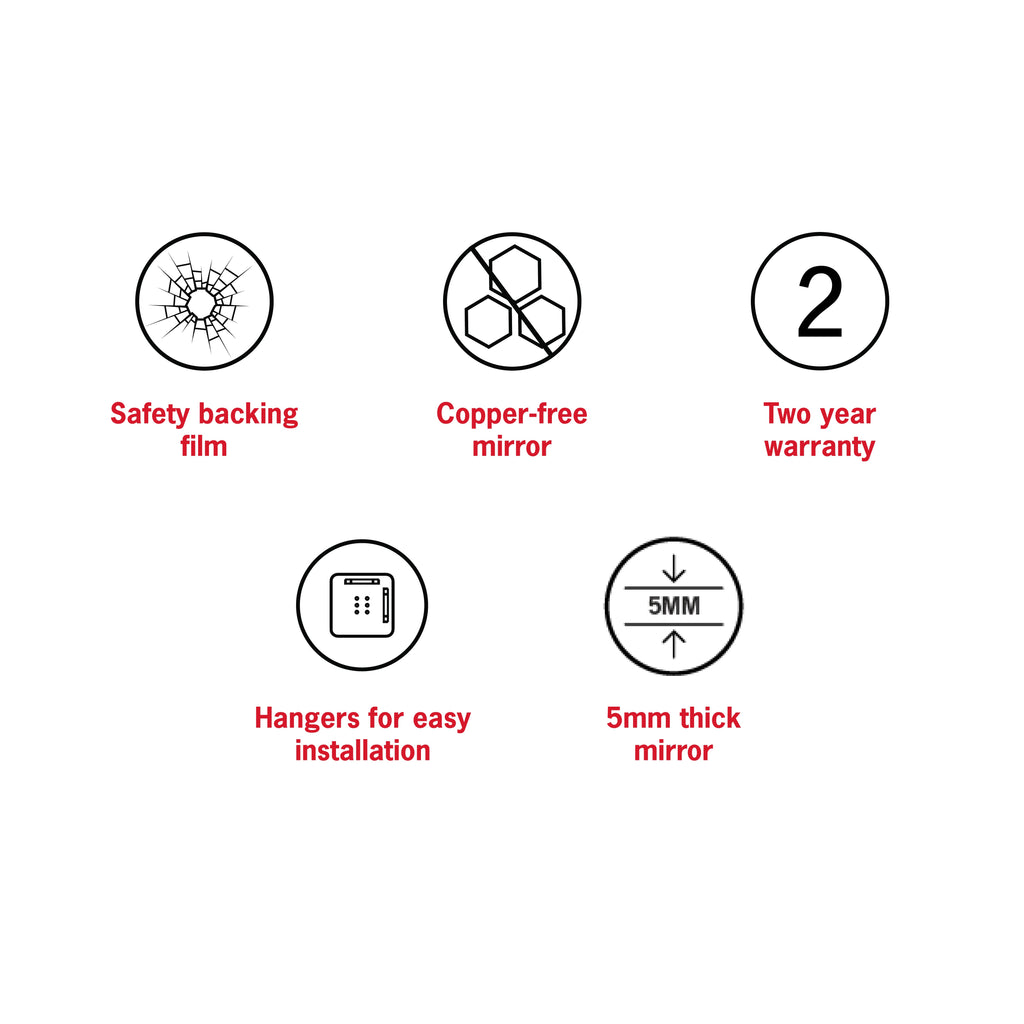 The Thermogroup Ablaze 900MM Round Polished Edge Mirror combines elegant design with functionality. Crafted from high-quality silver mirror material, this frameless, non-LED mirror features a polished edge for a sleek look. Its versatile design supports both landscape and portrait orientations, making it a perfect addition to any space. Measuring 900MM x 900MM x 14MM, it is durable and lightweight at approximately 11kg. The mirror includes a 2-year replacement warranty for peace of mind.