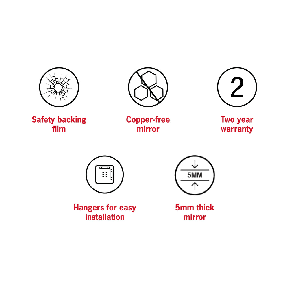 Thermogroup Ablaze Square 25mm Bevel Edge Mirror 750MM offers a sleek, frameless design that complements modern interiors. Made from premium silver mirror material, it features a beveled edge for added elegance. Measuring 750mm x 750mm x 14mm, this square mirror is suitable for both landscape and portrait orientations. With a durable construction and easy hanger mounting, it’s a versatile addition to any space. Backed by a 2-year replacement warranty, it combines style and reliability.