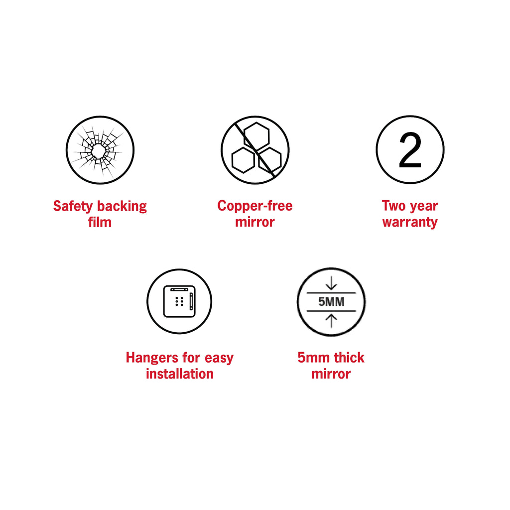Thermogroup Ablaze Square Polished Edge Mirror with Demister 750MM is a sleek and modern addition to any bathroom or living space. Crafted from high-quality silver mirror material, this frameless design features polished edges for a seamless look. Measuring 750MM x 750MM with a 14MM thickness, it offers versatile mounting options in both landscape and portrait orientations. The integrated demister ensures a clear reflection, and the 2-year replacement warranty provides added peace of mind.