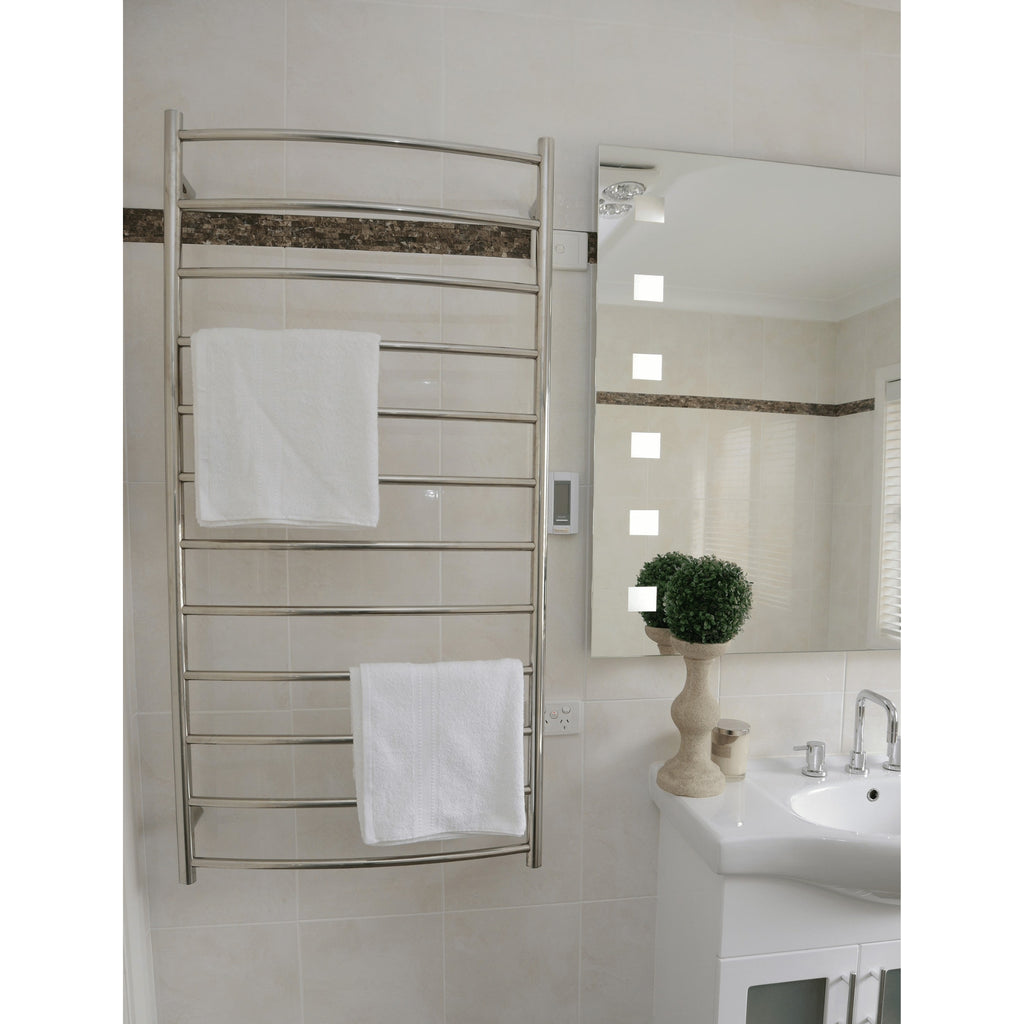 Elevate your bathroom with the indulgence of Heated Towel Rails—an affordable luxury for cozy, dry towels. The 700x1400 12-bar polished stainless steel ladder rail, combines aesthetics with functionality, featuring versatile multiflex wiring. Designed for rapid heating up to 45-55 degrees, the towel heater creates a spa-like ambience. Transform your daily routine into a pampering experience with the Heated Towel Rail—an exquisite touch of warmth and luxury. Operate it effortlessly with the on/off switch or optimize energy efficiency using a timer.