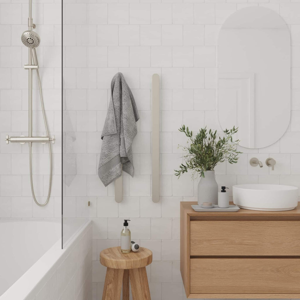 The Thermogroup Flat Pill Vertical Heated Single Towel Rail in Polished Stainless Steel offers a sleek and sophisticated addition to any bathroom. Crafted from durable 304-grade stainless steel, it measures 50mm x 900mm x 50mm with a modern flat profile. Wall-mounted with versatile top or bottom wiring, it delivers 20W of power and boasts an IP55 rating. Available in Brushed Stainless Steel, Brushed Nickel, Matte Black, and Brushed Brass, it includes a 7-year replacement warranty covering the finish, rail body, and element.