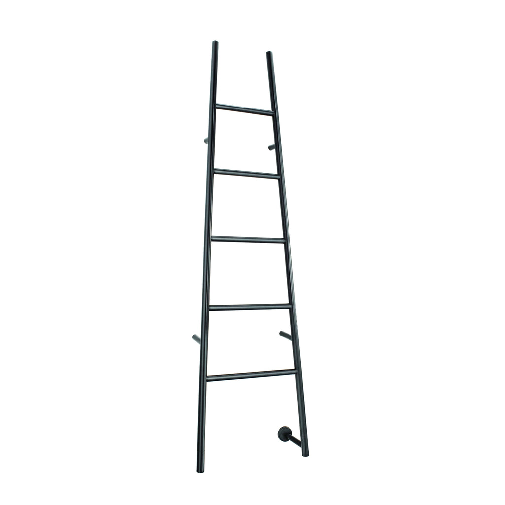 The Jeeves Rails are liquid-filled heated towel rails, offering an efficient way to warm and dry towels while also heating the bathroom. This technology allows the rail to operate at higher temperatures than typical electric rails by circulating heated water particles. The L52SBKR model features a satin black finish with five horizontal bars, comes prefilled, and is easy to wire on-site like a standard rail. Its elements are replaceable without needing to change the entire rail, and standard wiring is on the right side. These rails typically heat to 55-60 degrees within an hour. For energy efficiency, we recommend using a Timer to manage usage and costs.