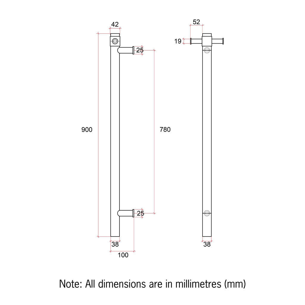 THERMOGROUP ROUND VERTICAL HEATED SINGLE TOWEL RAIL MATTE BLACK 900MM