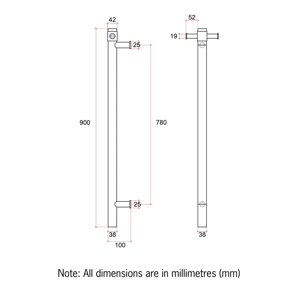 THERMOGROUP ROUND VERTICAL HEATED SINGLE TOWEL RAIL POLISHED STAINLESS STEEL 900MM (CUSTOM PLATED FINISH)