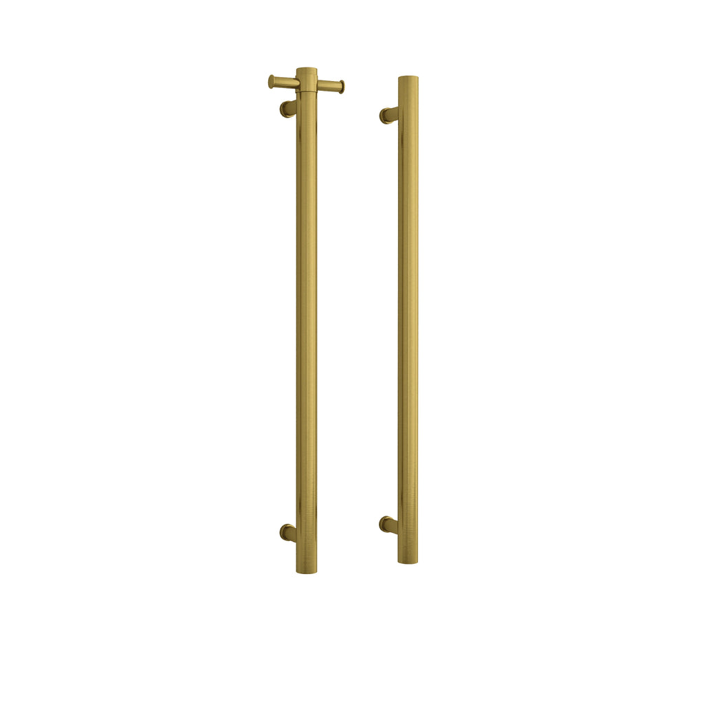 THERMOGROUP ROUND VERTICAL SINGLE HEATED TOWEL RAIL 900MM BRUSHED GOLD