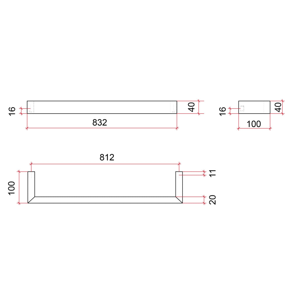 THERMOGROUP SQUARE SINGLE BAR HEATED TOWEL RAIL 832MM BRUSHED STAINLESS STEEL
