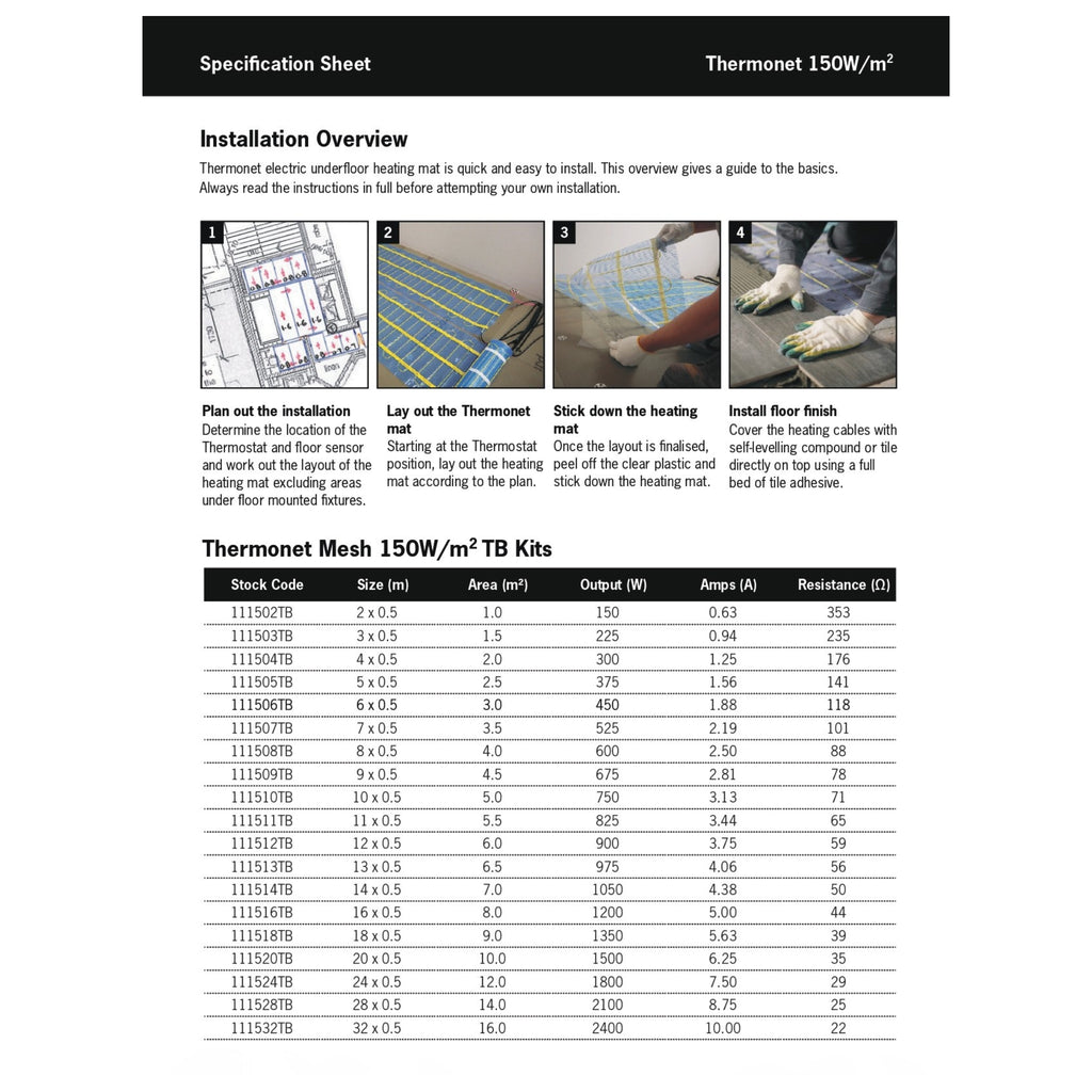 THERMOGROUP THERMONET 150W/M² UNDERTILE HEATING KIT WITH BLACK THERMOSTAT