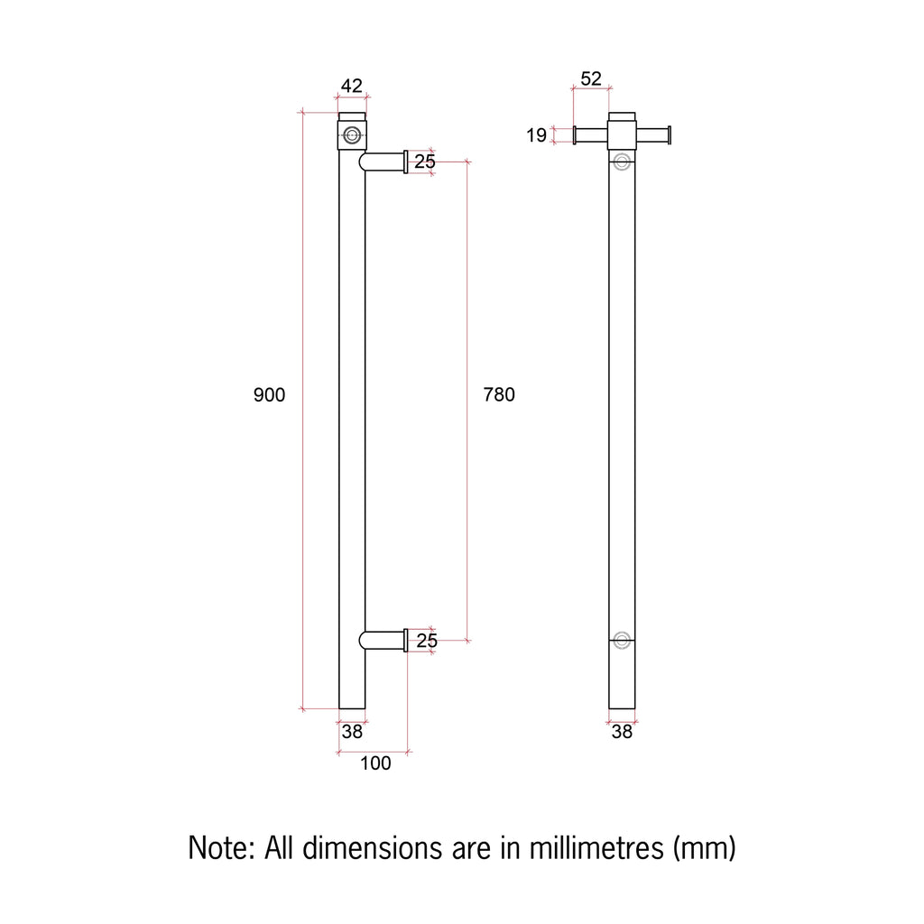 THERMOGROUP STRAIGHT ROUND VERTICAL SINGLE HEATED TOWEL RAIL 900MM