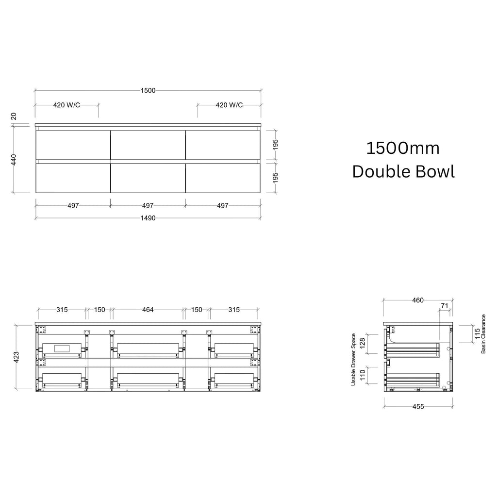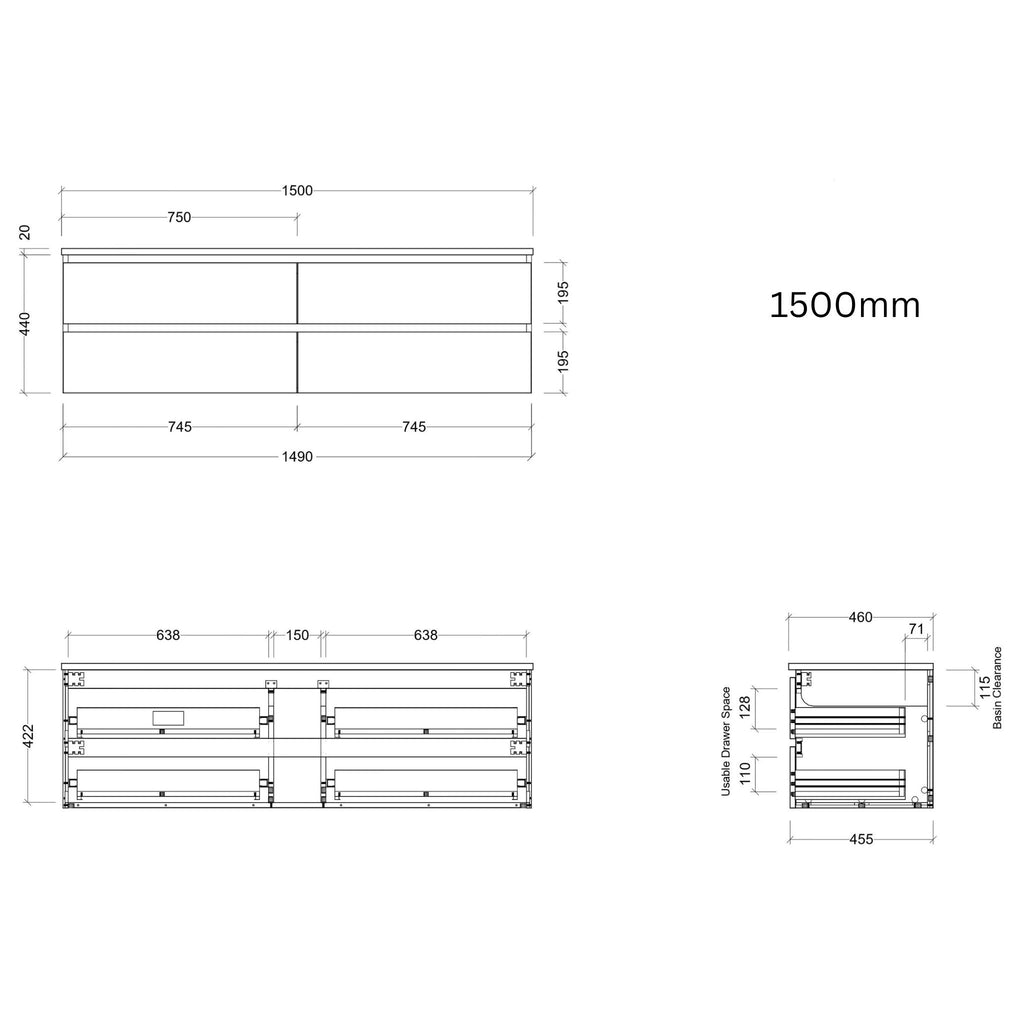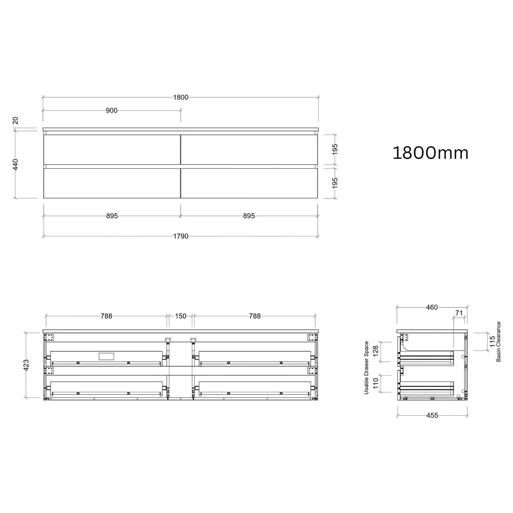 TIMBERLINE ASHTON CUSTOM WALL HUNG VANITY (ALL SIZING)