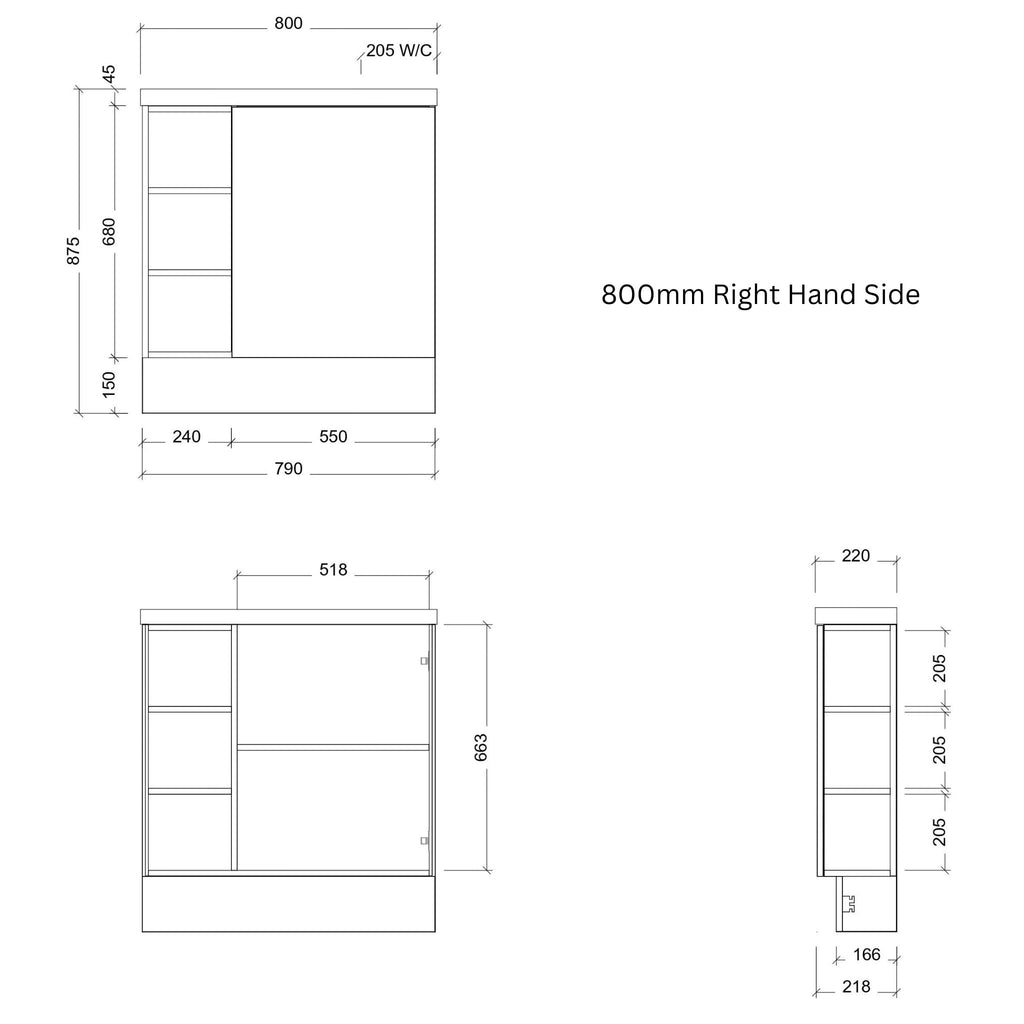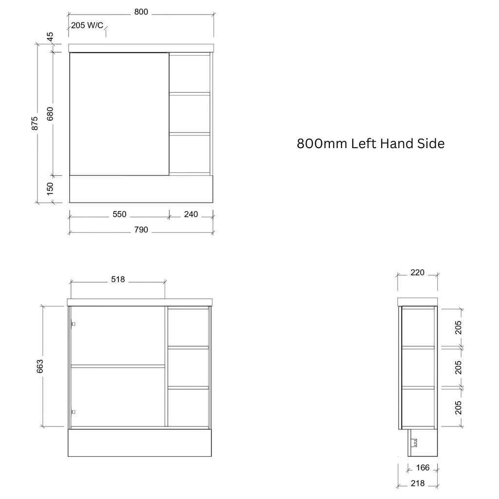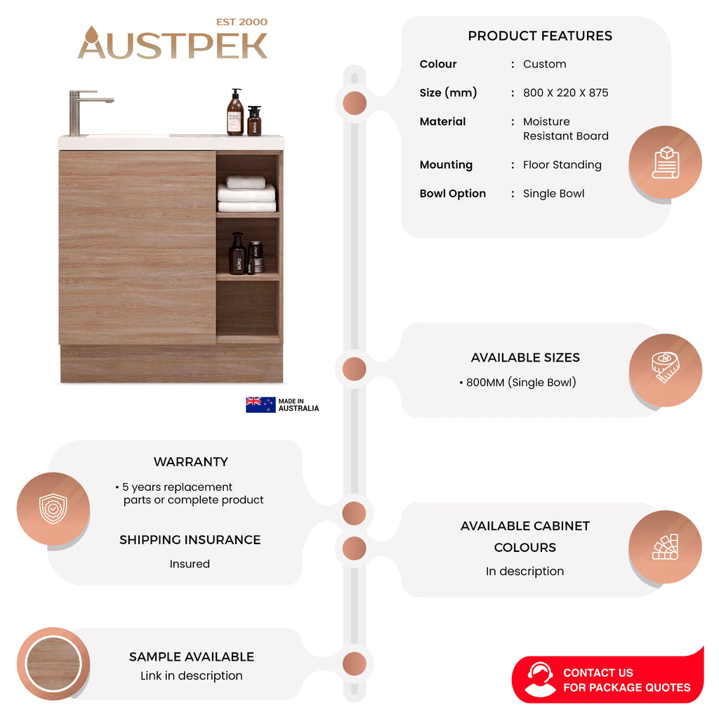 TIMBERLINE EADIE 800MM SPACE SAVING SINGLE BOWL CUSTOM FLOOR STANDING VANITY