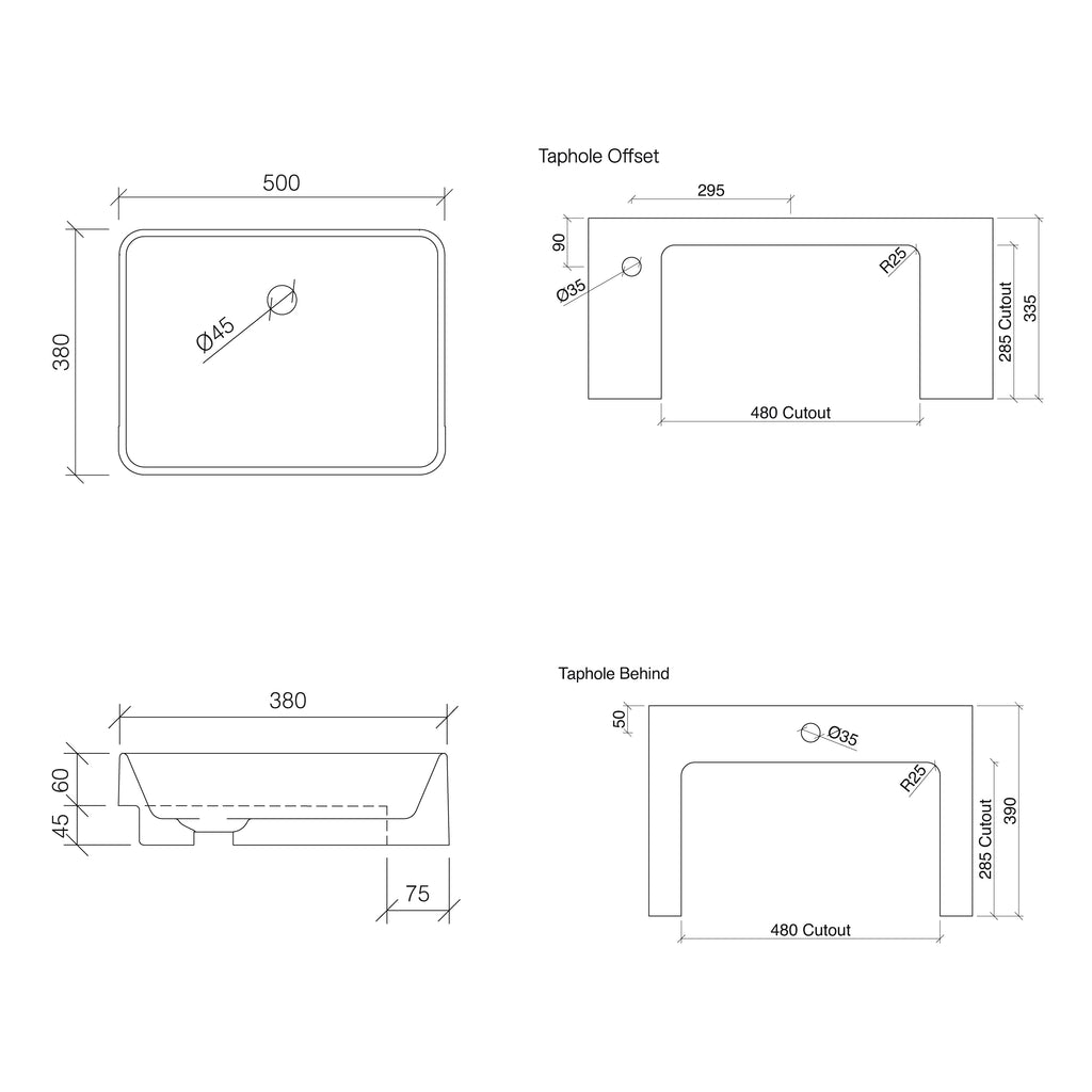 TIMBERLINE FERGUS SEMI-RECESSED BASIN GLOSS WHITE 500MM