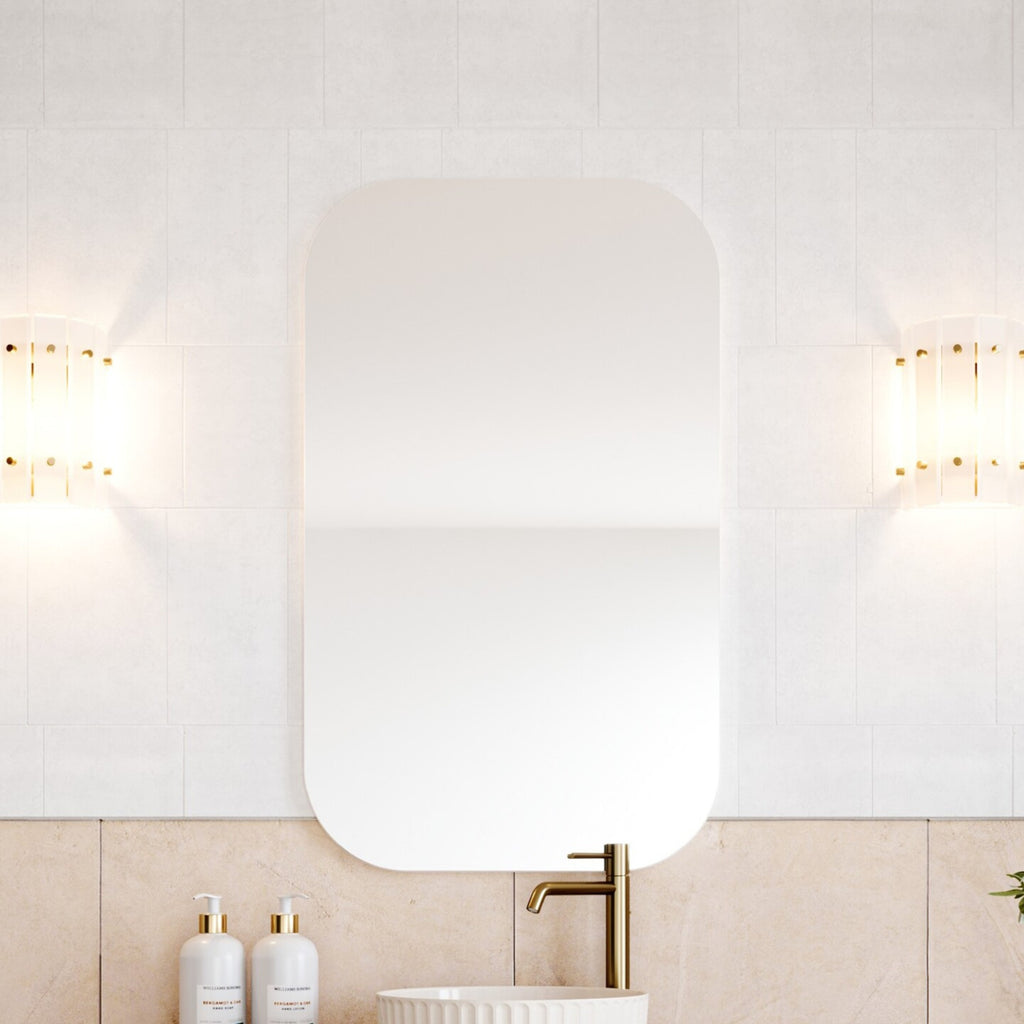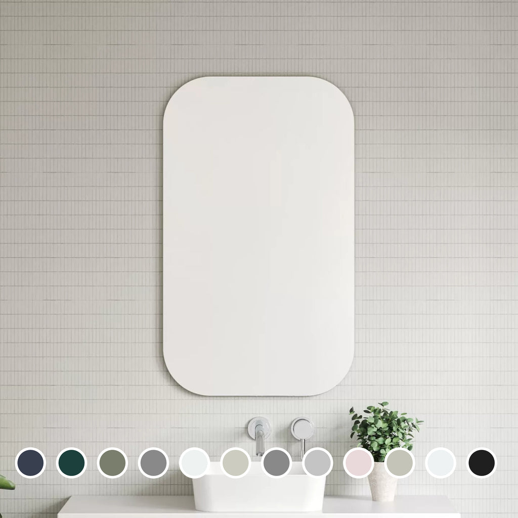 The Timberline Jazz Arch Custom Mirror adds a graceful touch to your bathroom with its soft, curved corners. The standard white satin edging creates a clean look, while you can select any painted colour from Timberline's range to perfectly accentuate your vanity. Available in custom sizing, this mirror is designed to fit seamlessly into your space. Backed by a 1-year manufacturer's warranty, the Jazz Arch offers both elegant style and dependable quality for your bathroom.