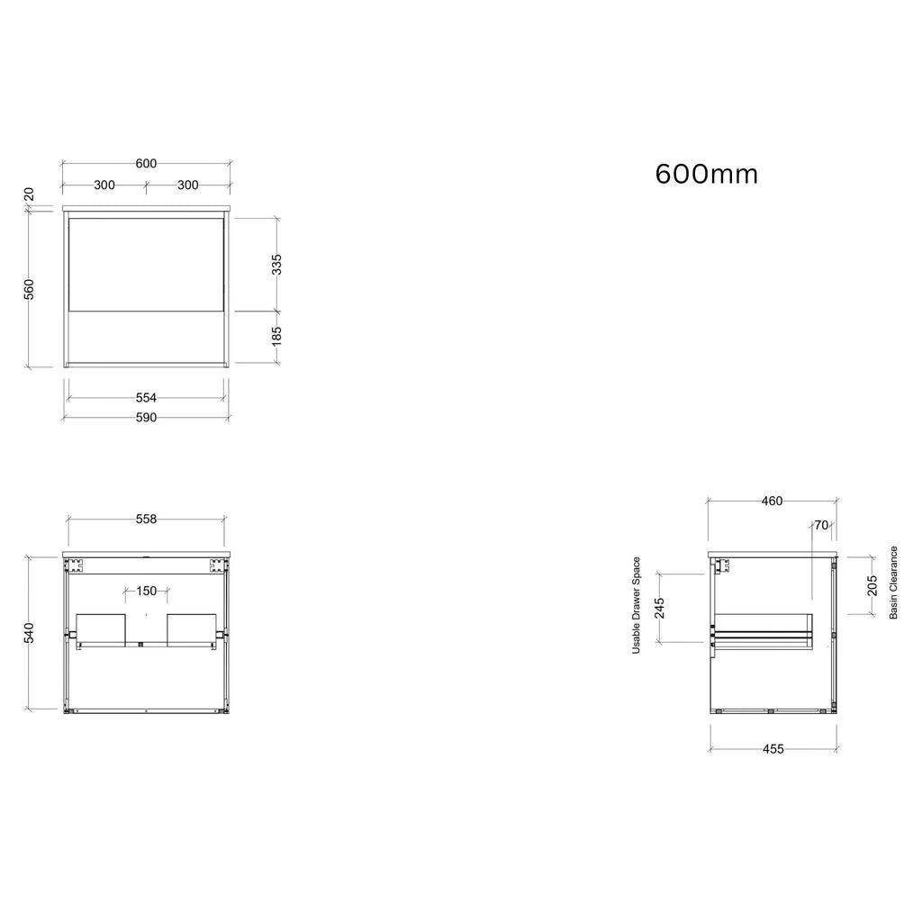 - Standard 560mm Depth and 480mm Height