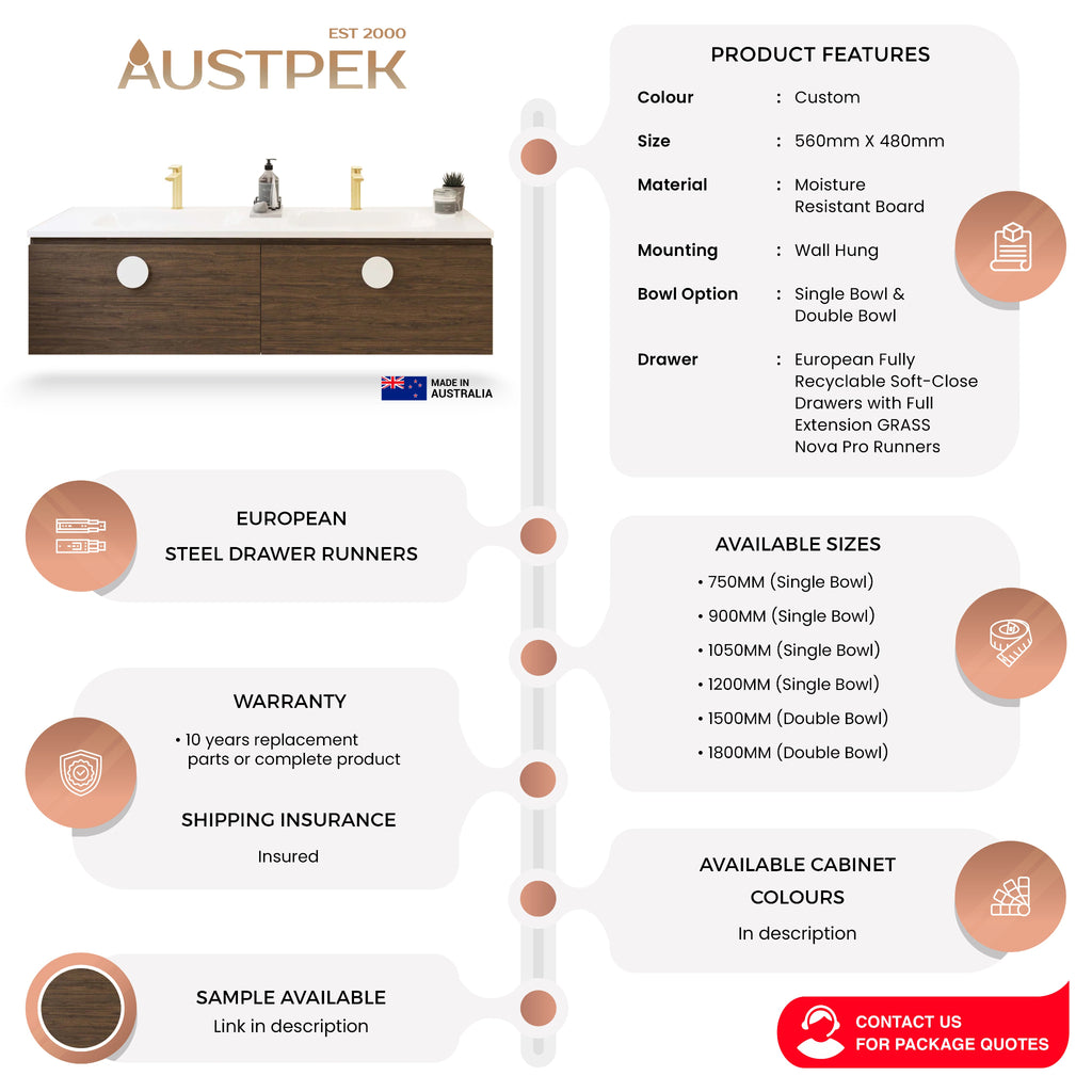 TIMBERLINE KINGSLEY CUSTOM WALL HUNG VANITY (ALL SIZING)