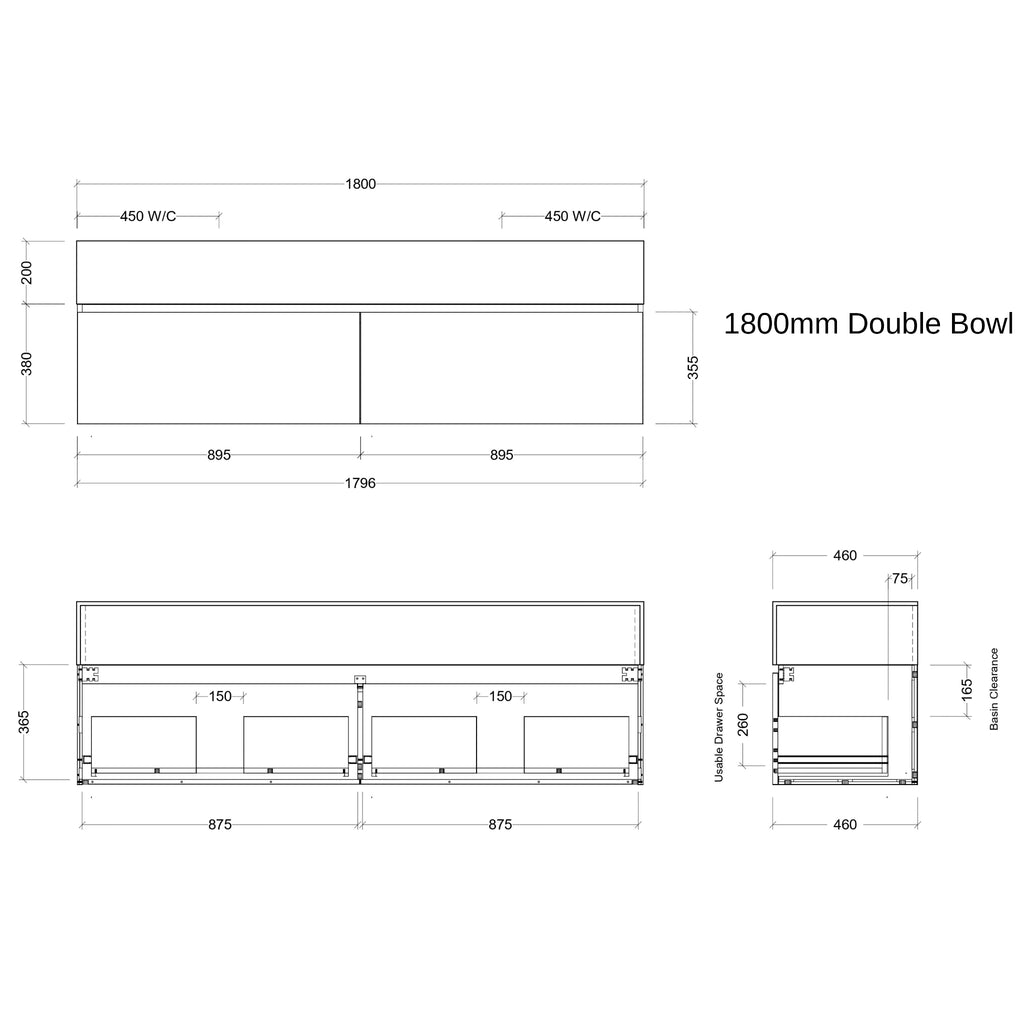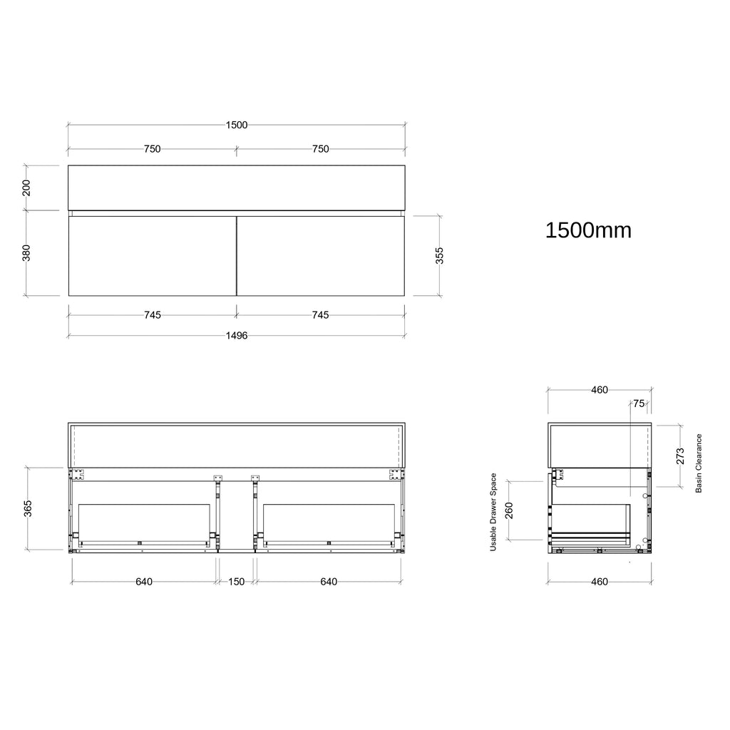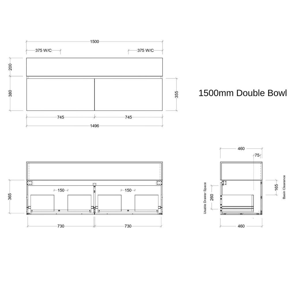 - Standard 560mm Depth and 480mm Height