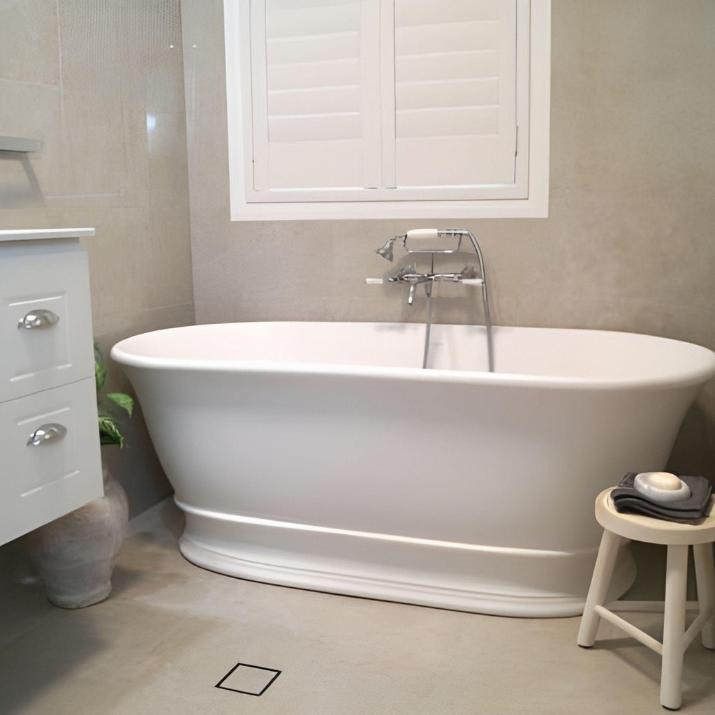 TURNER HASTINGS CAMBRIDGE TITANCAST SOLID SURFACE FREESTANDING BATHTUB SATIN SILK WHITE WITH OVERFLOW (AVAILABLE IN 1555MM & 17400MM)