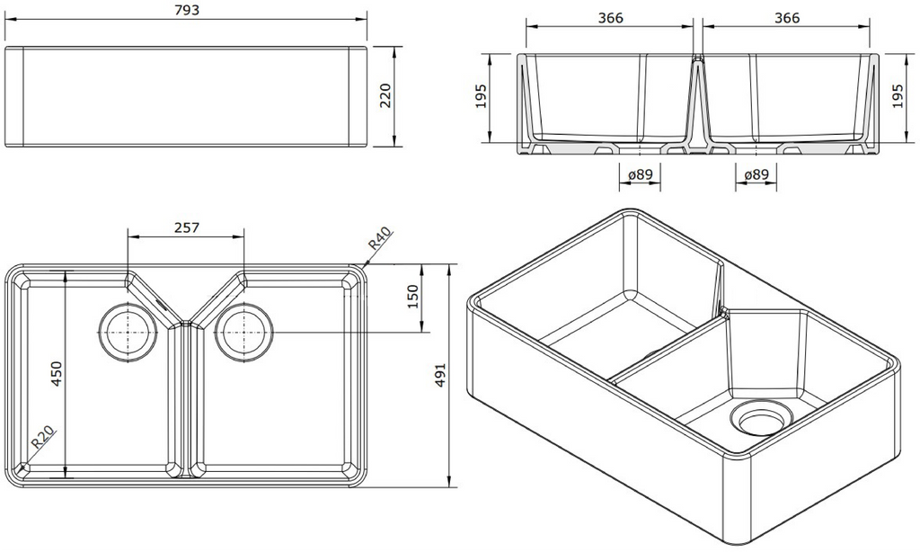 The Turner Hastings Chester Farmhouse Double Bowl Butler Sink, with no taphole and a gloss white finish, spans 800mm, offering a splendid blend of style and practicality. Crafted from double-glazed fine fireclay in Portugal, this sink is renowned for its durability and resistance to thermal shock, stains, scratches, and chemicals. Its elegant design complements any bathroom decor, while its robust construction ensures a lifetime of service, backed by a lifetime warranty.