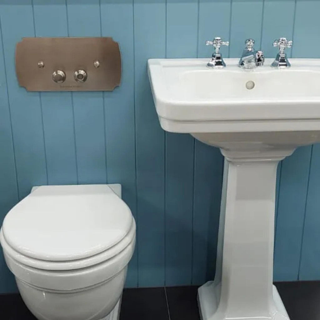 - Due to The Nature of A Geberit Cistern Having Offset Valves, the Flush Button Will Sit Slightly Offset 8mm to The Right of The Centreline of The Toilet.