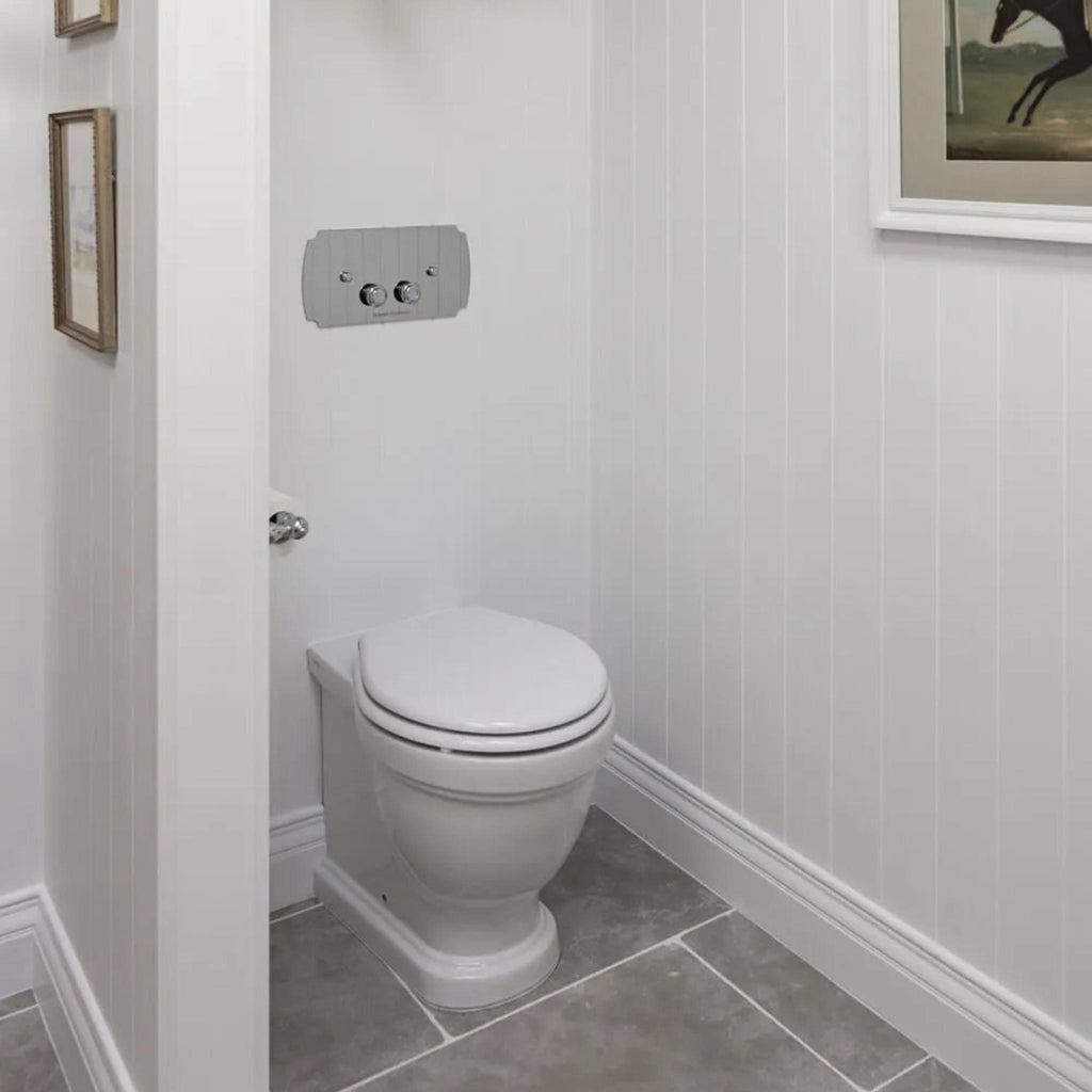 - Due to The Nature of A Geberit Cistern Having Offset Valves, the Flush Button Will Sit Slightly Offset 8mm to The Right of The Centreline of The Toilet.