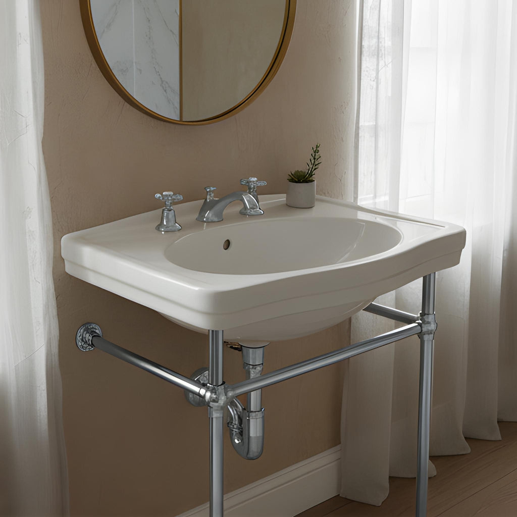 The Turner Hastings Claremont Nuovo Basin Stand in Chrome showcases premium Italian craftsmanship with a sturdy raw brass frame finished in long-lasting PVD coating. Paired with a refined ceramic basin offering tap-hole options of none, one, or three, it provides exceptional design versatility. Fully adjustable in height, width, and depth, it ensures precise installation. Measuring 580 × 450 × 833mm, this elegant stand is backed by a lifetime frame warranty and a 6-year basin warranty, ensuring enduring quality.