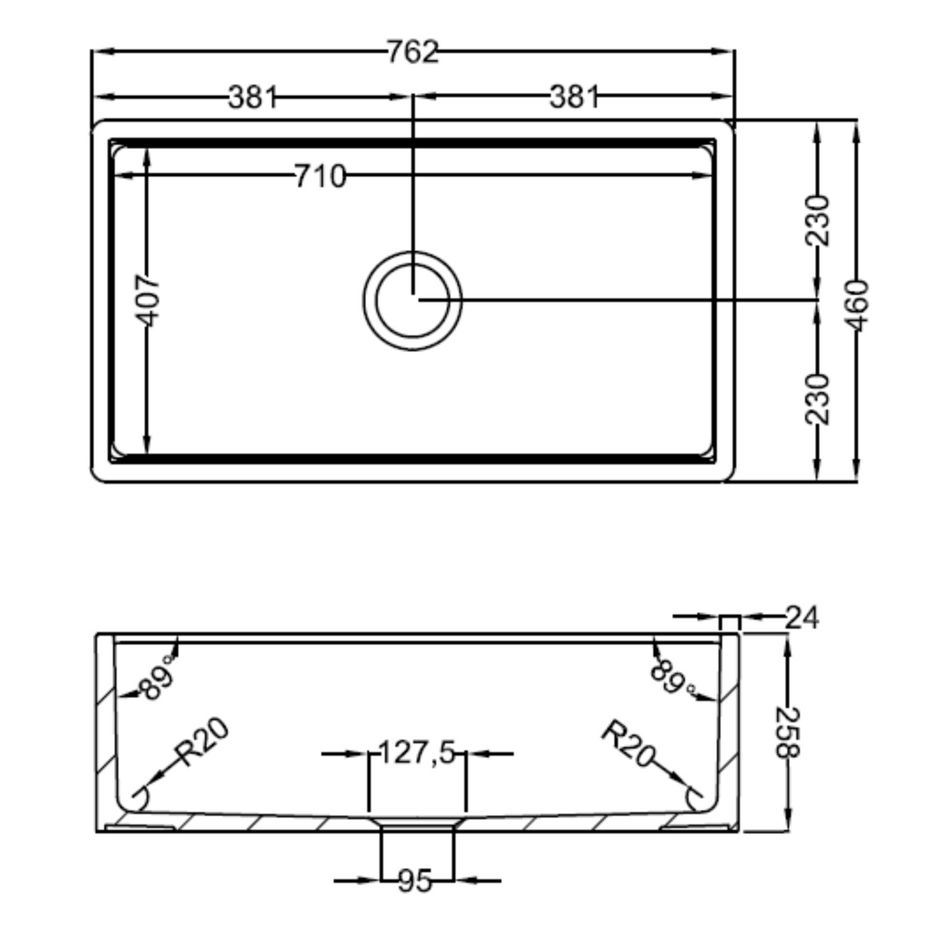 TURNER HASTINGS COVE FIRECLAY BUTLER SINK GLOSS WHITE 762MM
