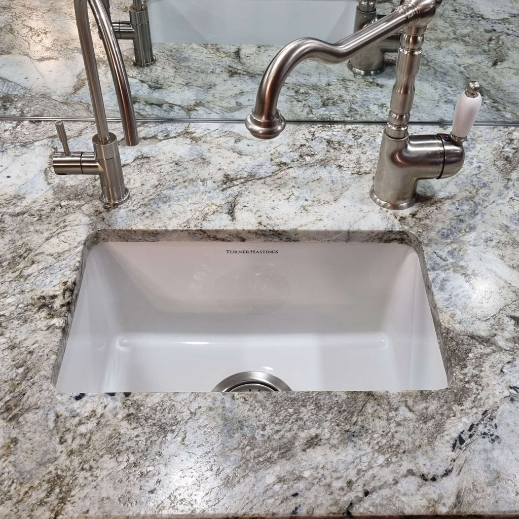 TURNER HASTINGS CUISINE INSET AND UNDERMOUNT FINE FIRECLAY SINK GLOSS WHITE 300MM