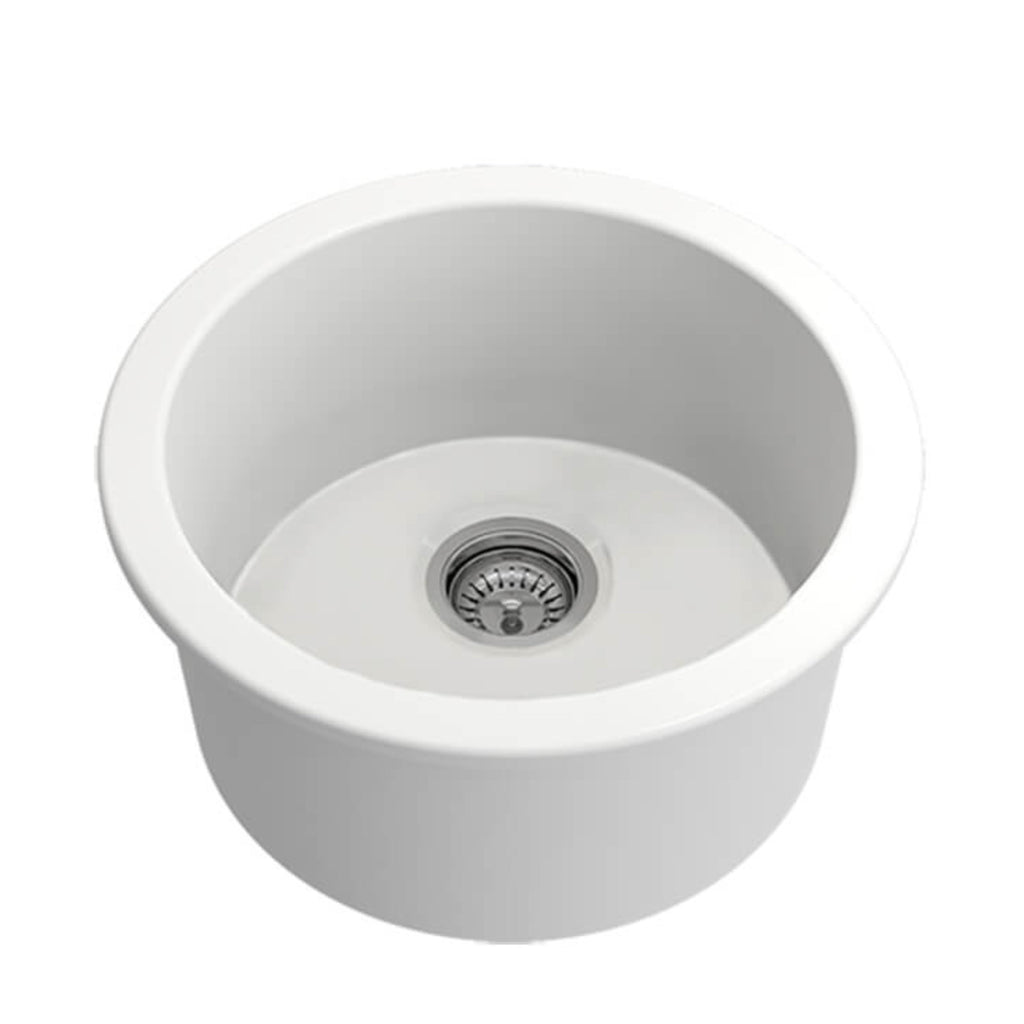 TURNER HASTINGS CUISINE ROUND INSET AND UNDERMOUNT FINE FIRECLAY SINK MATTE WHITE 470MM