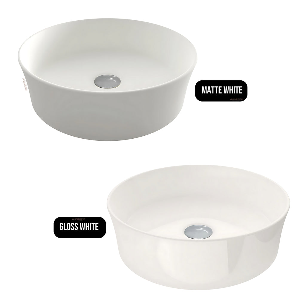 TURNER HASTINGS FINO ROUND ABOVE COUNTER FIRECLAY BASIN GLOSS WHITE 382MM