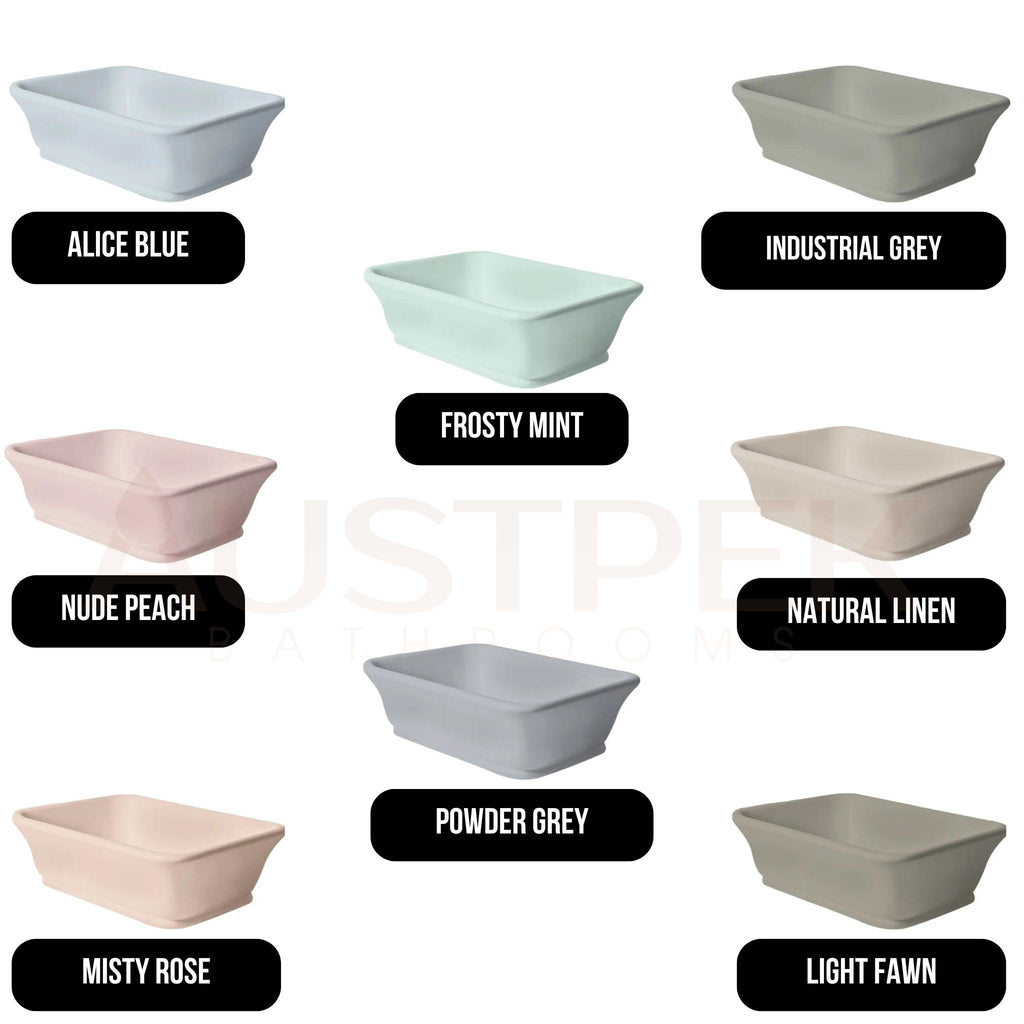 Elevate your bathroom with the Turner Hastings Kirkham TitanCast Above Counter Basin. Handcrafted in South Africa, this rectangular masterpiece features elegant curved edges and a unique custom colour finish. Measuring 525mm, the non-porous solid surface material ensures scratch-resistant durability and easy maintenance. This non-overflow basin includes an adjustable flexible outlet pipe and requires a 32mm waste. Experience timeless quality and peace of mind with a lifetime warranty, making this basin a premium choice for any home.
