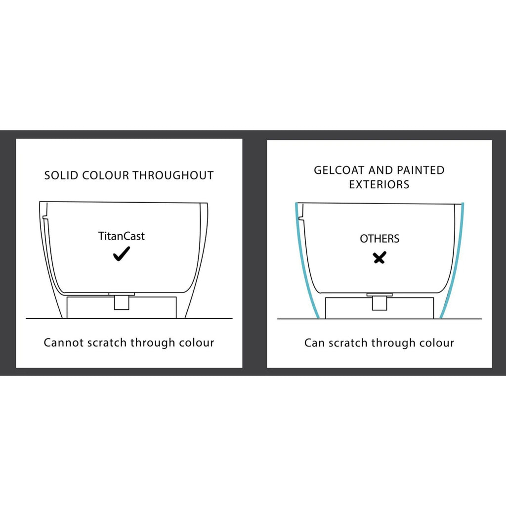 The Turner Hastings Kirkham TitanCast Solid Surface Freestanding Bathtub with Ball Feet, available in 1600mm and 1800mm, combines vintage charm with modern durability. Made in South Africa from solid TitanCast, it features a special finish and classic ball feet that create a striking traditional look. Its non-porous surface is resistant to stains, chemicals, and scratches, which can be buffed out with ease. Spacious and luxurious, this bath is backed by a lifetime warranty.