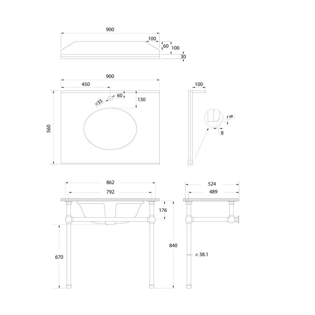 The Turner Hastings Mayer Basin Stand, featuring a genuine Carrara marble top from Italy, spans 900mm in width. Available in Chrome, Brushed Brass, and Brushed Nickel, it's constructed from raw brass with a PVD finish, ensuring a flawless appearance and lasting durability. The stand's height, width, and depth are fully adjustable. Complemented by a ceramic basin, this piece comes with a lifetime warranty on the frame, 6 years on the basin, and 3 years on the marble.