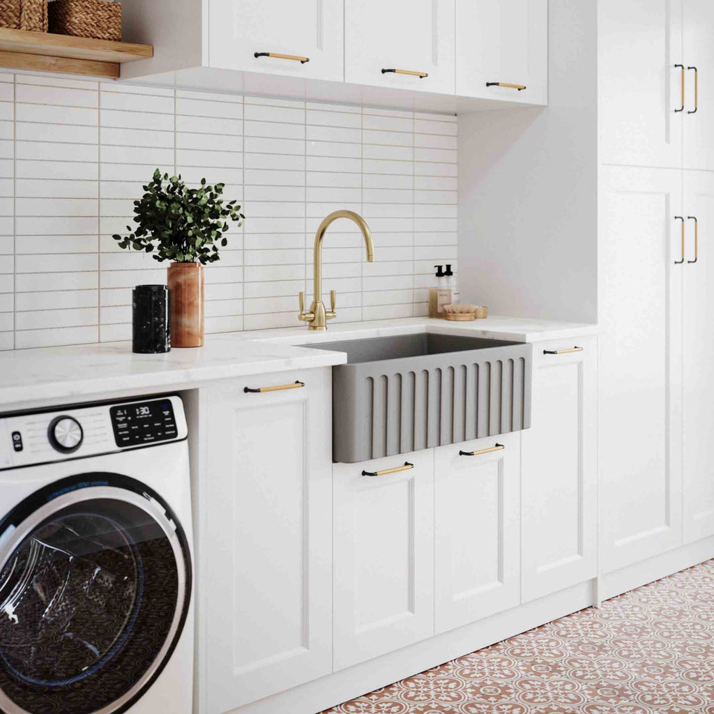 The Turner Hastings Novi Farmhouse Butler Sink, in a striking 750mm concrete look, combines rustic charm with modern functionality. Made in Europe from fine fireclay, it is exceptionally durable and resistant to thermal shock. This sink features an overflow and boasts a surface that is highly resistant to stains, scratches, and chemicals, ensuring longevity in busy kitchens. With its lifetime warranty, this sink is a testament to quality, blending traditional aesthetics with contemporary resilience.