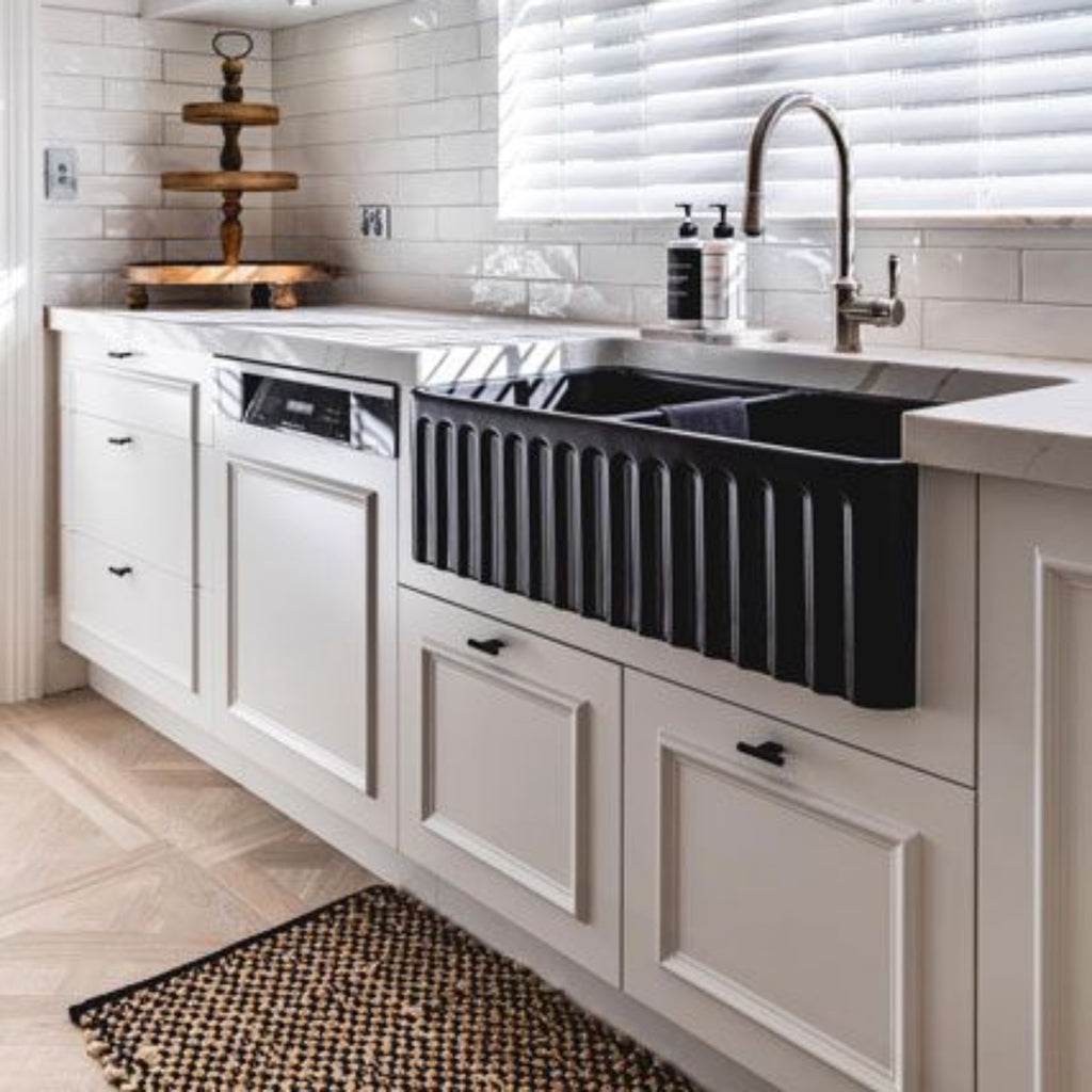 The Turner Hastings Novi Farmhouse Double Bowl Butler Sink, in a stunning matte black and measuring 850mm, marries functionality with rustic charm. Crafted from fine fireclay in Europe, this non-overflow sink is highly durable and resistant to thermal shock. Its surface is exceptionally resistant to stains, scratches, and chemicals, ensuring longevity and ease of maintenance. This sink is backed by a lifetime warranty, making it a reliable and stylish addition to any kitchen.