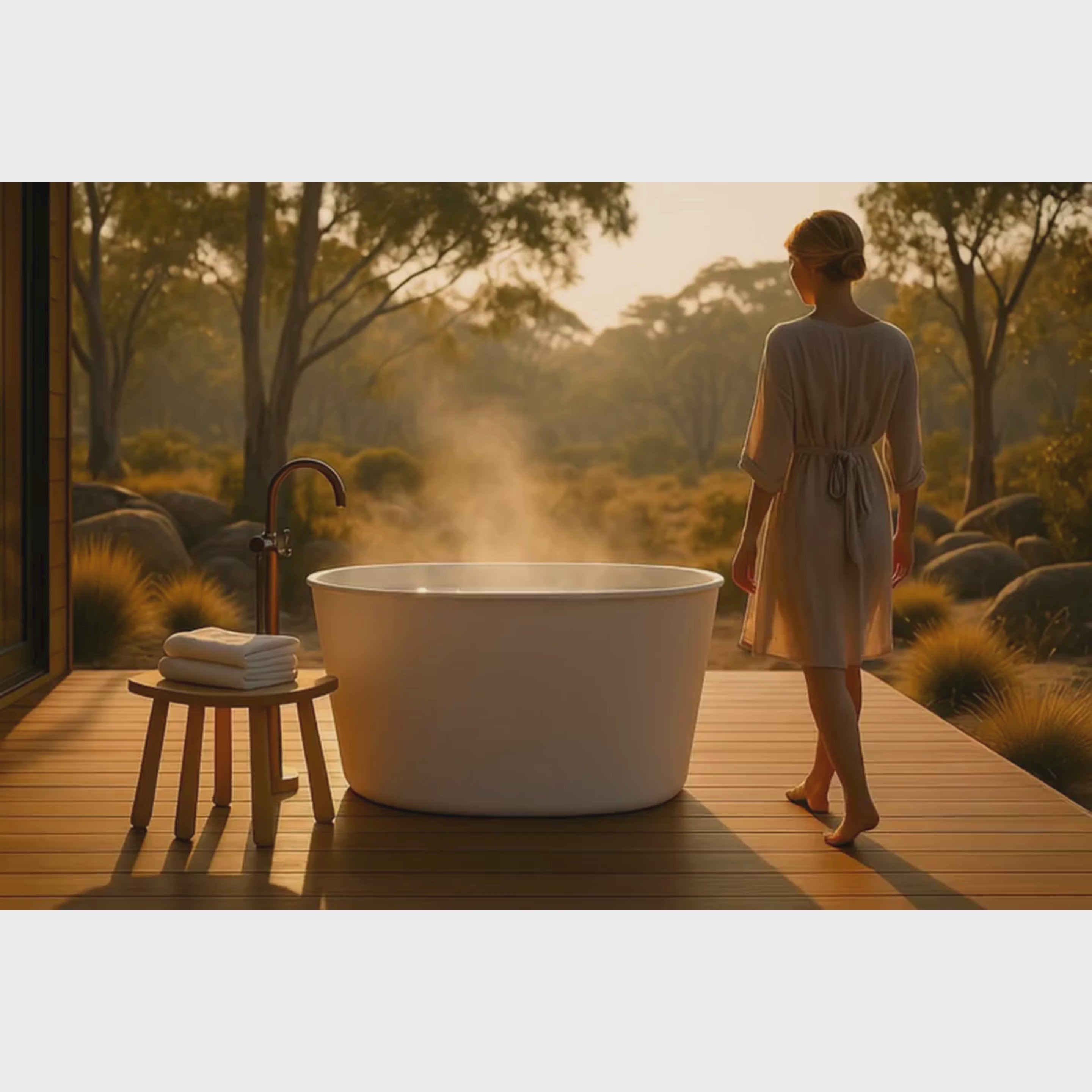 Elevate your bathroom with the Turner Hastings Onwa Freestanding Bath, handcrafted in South Africa from premium TitanCast solid surface. This compact 1114mm bathtub in elegant satin silk white offers superior heat retention and a non-porous, stain-resistant finish. Featuring an ergonomic built-in seat and generous internal depth, its durable construction ensures it won't bend like acrylic. With a lifetime warranty and easy-to-clean surface, this repairable bathtub provides a luxurious, long-lasting soaking experience for any modern Australian home.