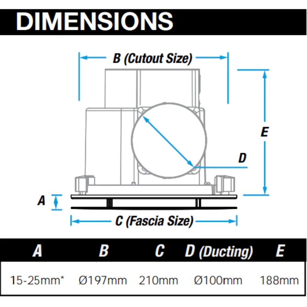 - Cutout Dimensions: Ø197mm