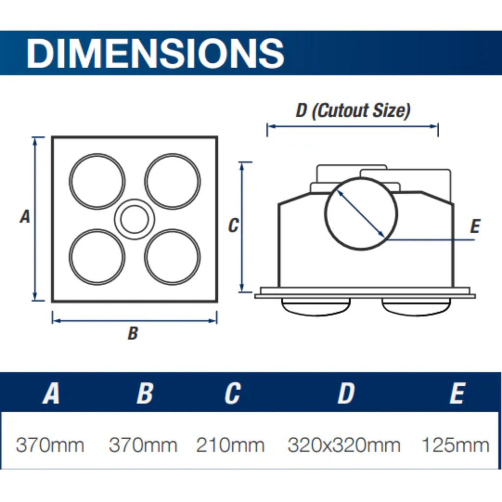 - Includes A 4 Gang Switch, 4 X 275w Heat Lamps And 1 X 10w Led Downlight